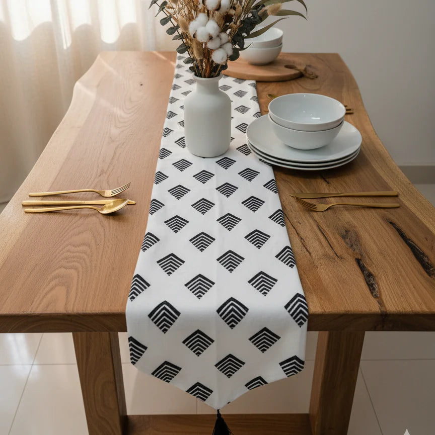 Explore the beauty of nature with our Black and White Flora Table Runner Featuring intricate vine designs, this runner adds a touch of elegance to any dining setting. Made with high-quality materials, it is durable and easy to clean. Elevate your dining experience with this unique and stylish addition.