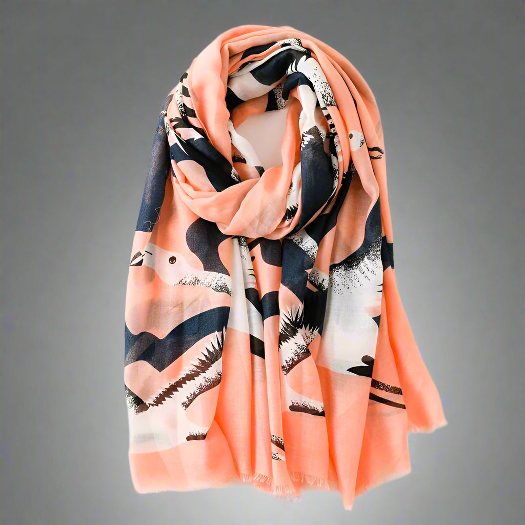 Make a bold statement with the Coral Coast Scarf, featuring a vibrant blend of satin and polyester silk in a generous 74 x 28-inch size. Its striking, detailed design commands attention, while the lightweight fabric flows effortlessly for daring, versatile looks. Durable and easy to hand wash, this scarf is the perfect accessory to elevate any outfit with vivid charm.
